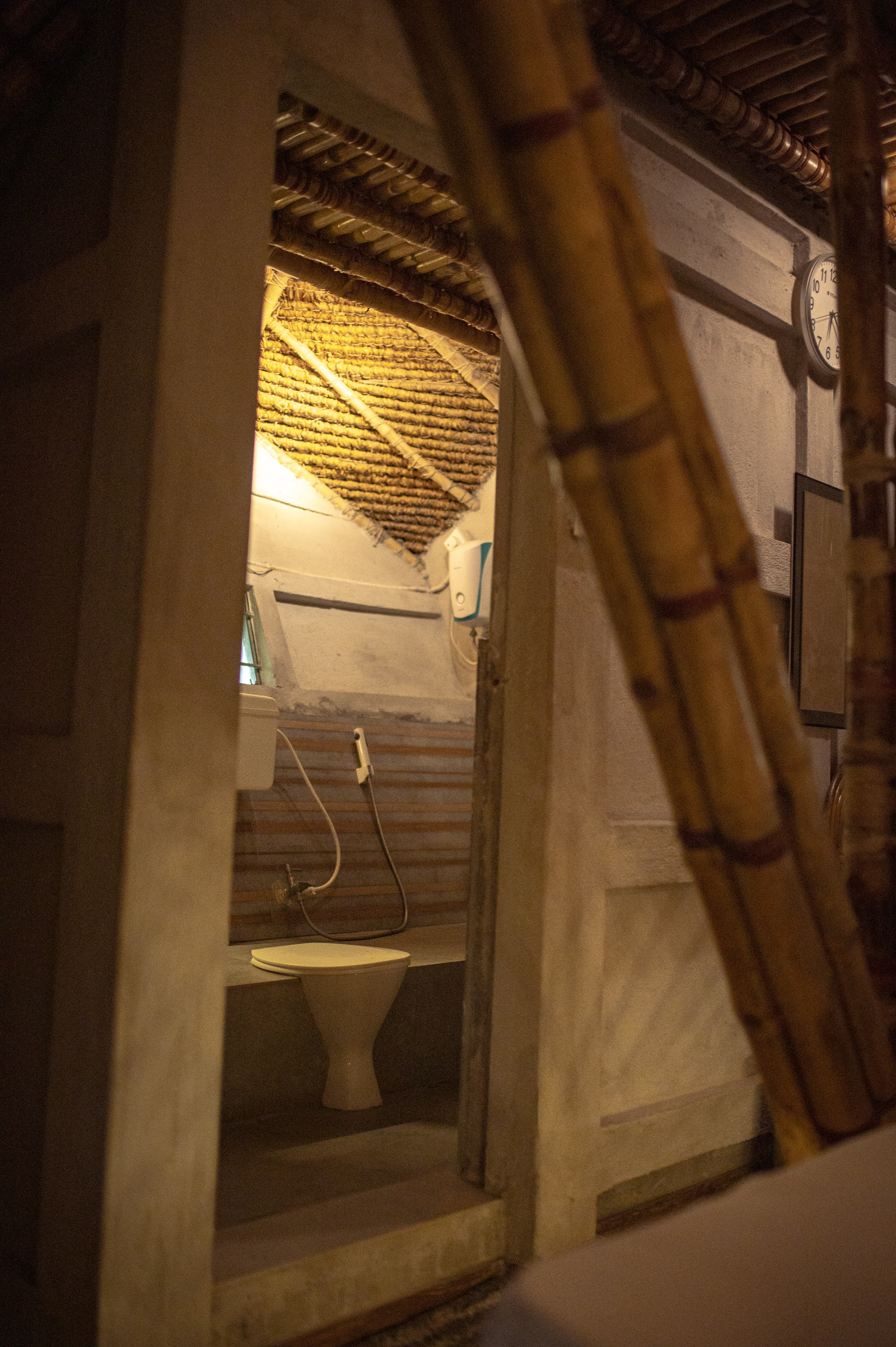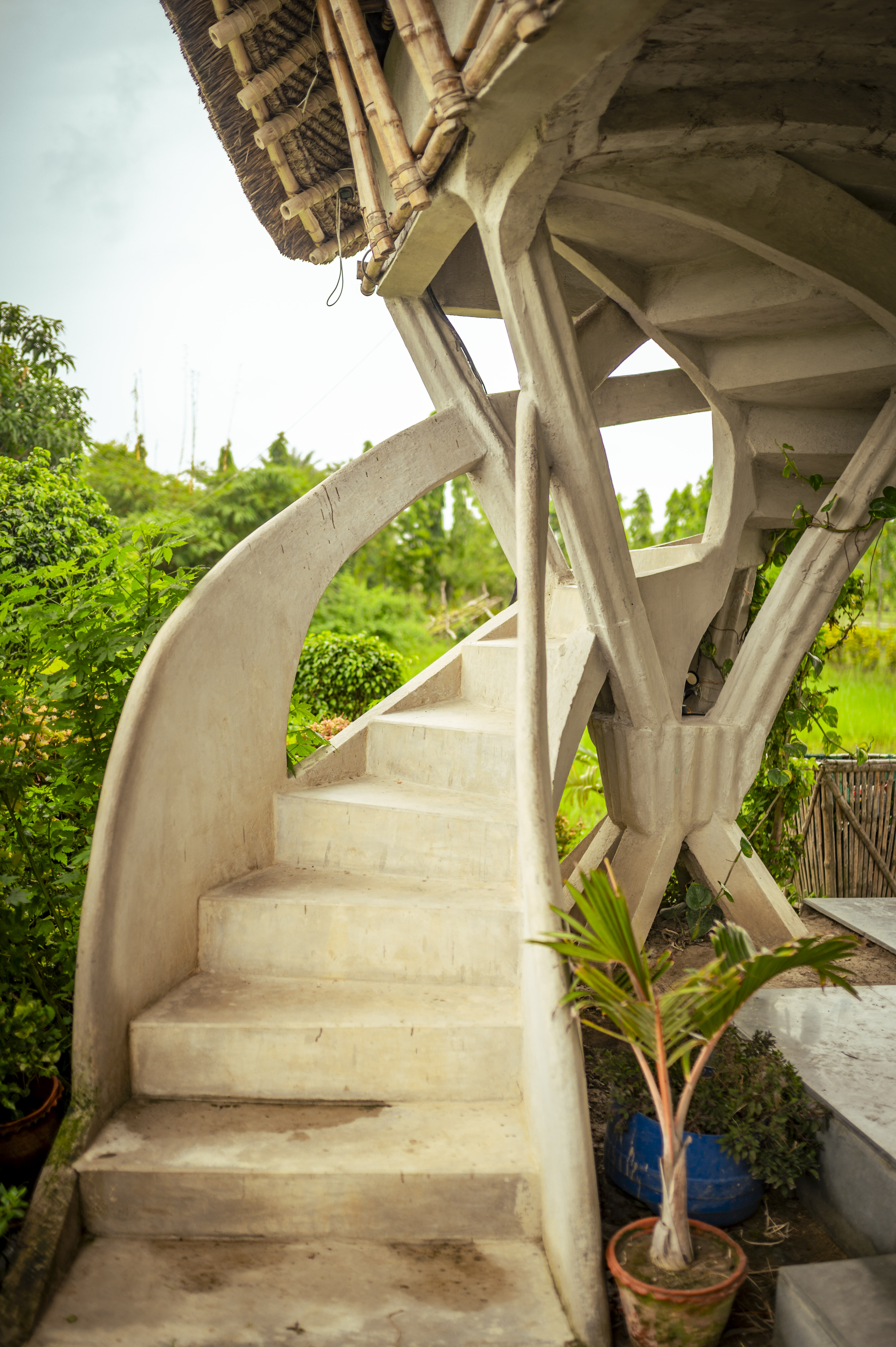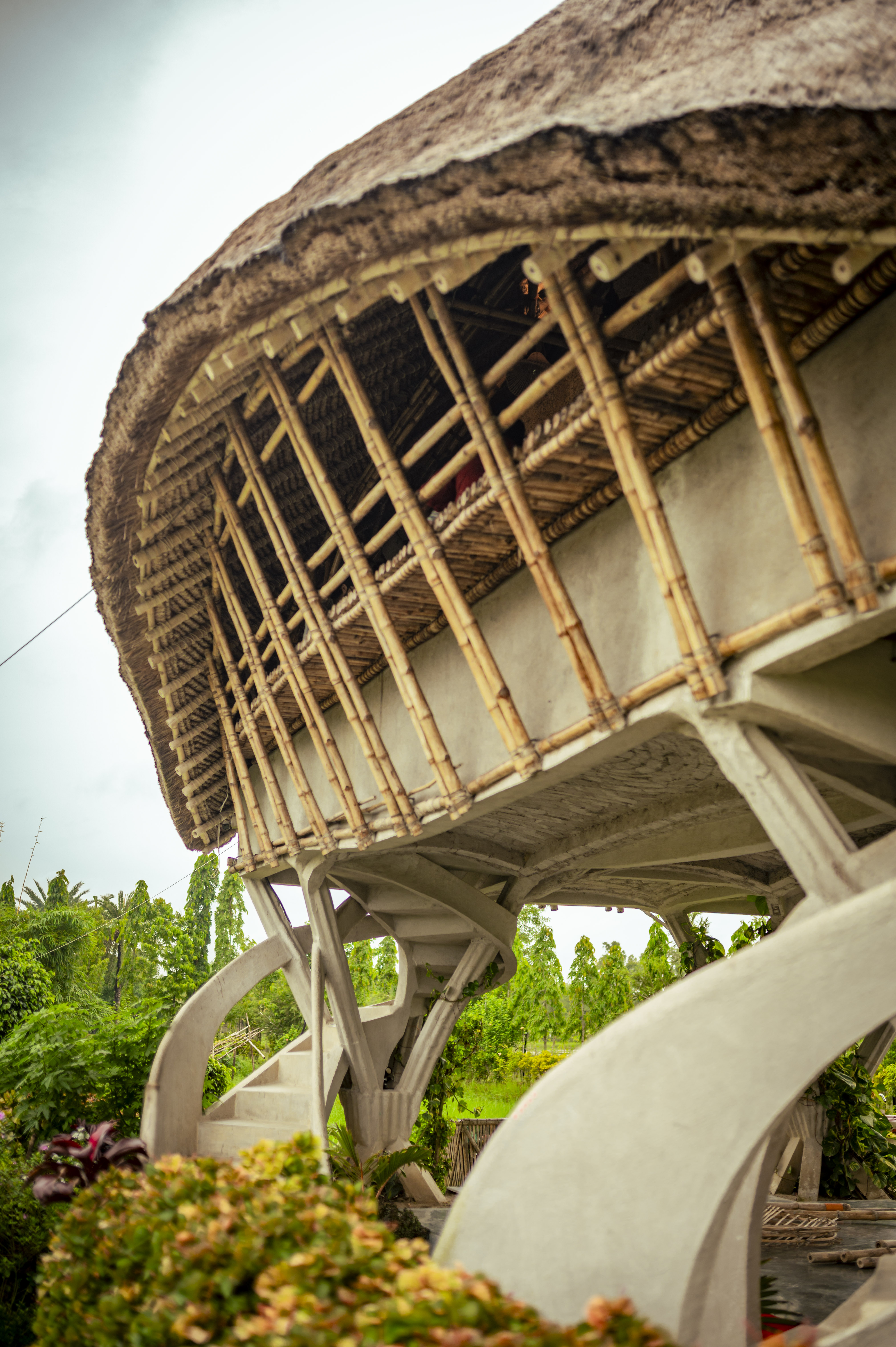 As a flood-proof bamboo structure, the project uses elevation not as a stylistic gesture but as an environmental strategy. Staircases on both sides improve accessibility, while the verandah acts as a transitional social zone between indoors and outdoors.