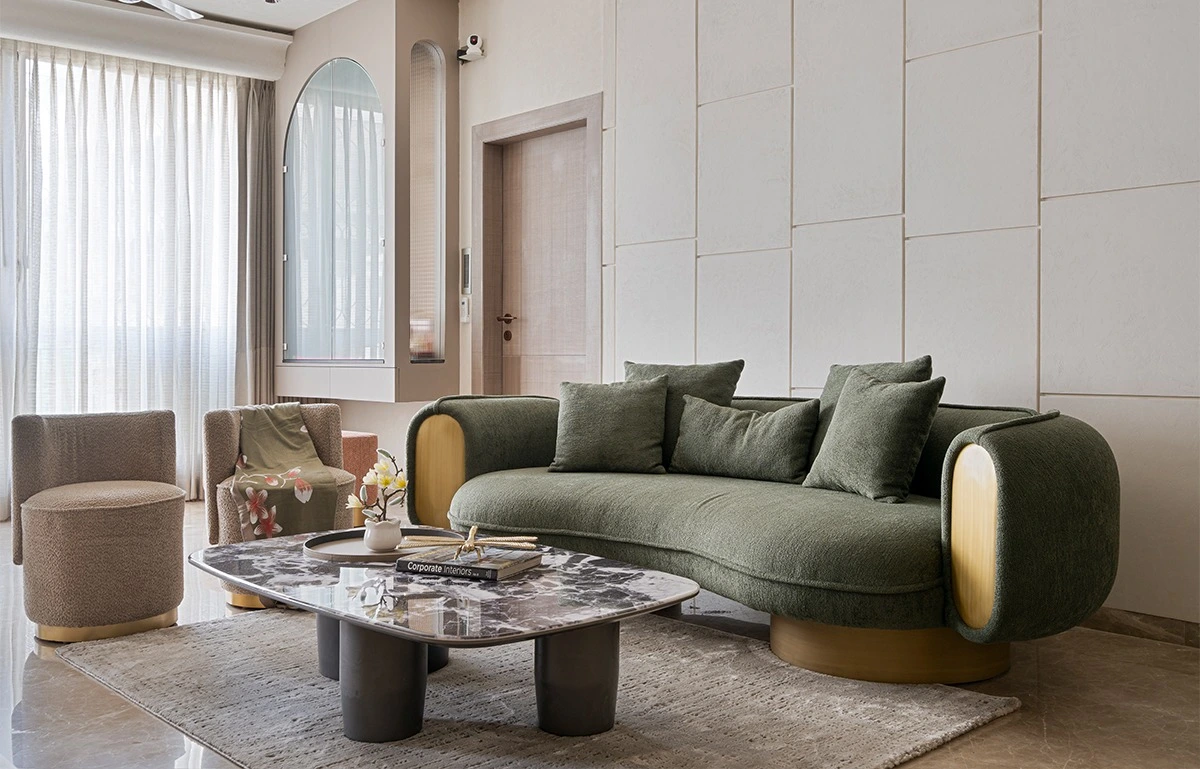Taking this design language forward, Interior Designer Neha Jaipuria of Olive Design Studio has crafted a residence that beautifully embodies the concept. Located in Kolkata, this thoughtfully planned apartment combines serene tones, tactile finishes, elegant furniture, and purposeful layouts to create a deeply liveable sanctuary. It stands as a compelling example of what Luxury Residential Interior Design tends to be in Kolkata, where simplicity is elevated through detail rather than decoration.