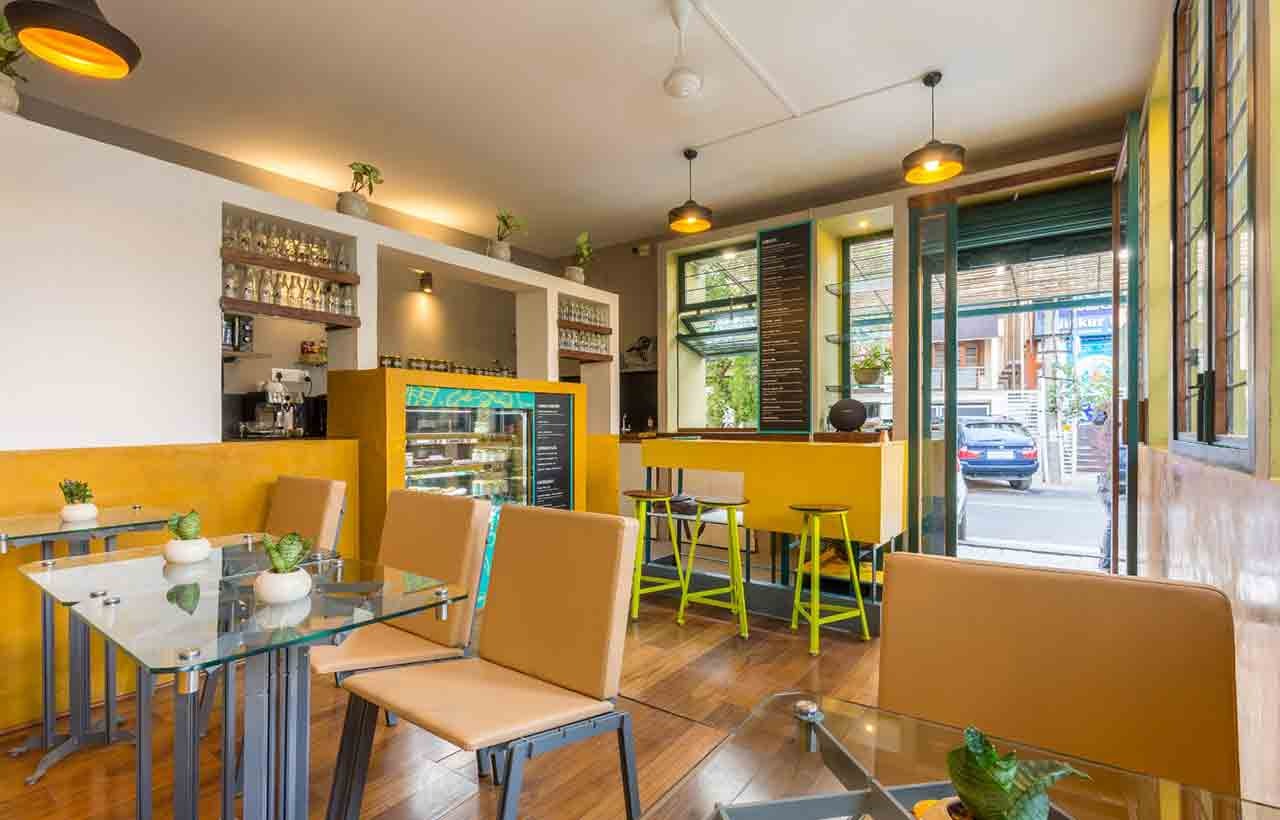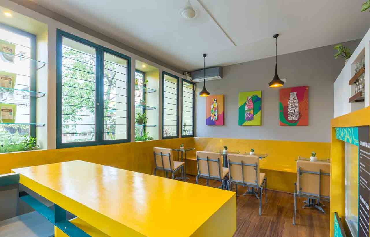 Sustainability was a driving force behind the design decisions, evident in the use of reused stone cladding and reclaimed timber. These materials not only showcased an eco-friendly approach but also demonstrated a commitment to a cost-conscious strategy. The juxtaposition of these elements, with their inherent textures and stories, added a layer of depth to the design, creating a space that felt both warm and responsible. The infusion of handmade cement oxide finishes further elevated the aesthetic appeal of the smoothie bar. These finishes, meticulously crafted, added a personalized and bespoke touch to counters and benches. The use of cement oxide not only contributed to a unique visual identity but also symbolized the blend of robust functionality with artisanal craftsmanship.