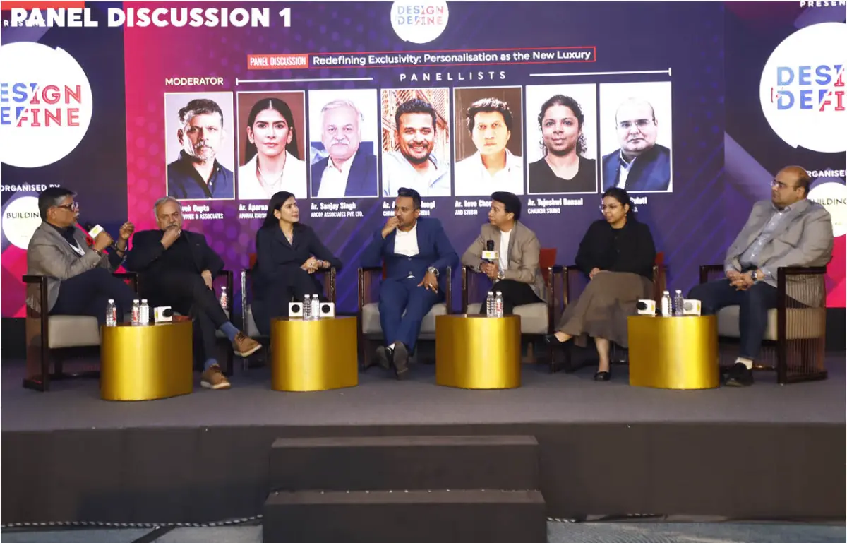 The first panel discussion was quite an interesting segment filled with humour and candid conversations. Moderated by Ar. Vivek Gupta, this panel had an engaging exchange on how everyone views luxury. Titled “Redefining Exclusivity: Personalisation as the New Luxury”, the discussion set the tone for the evening with a layered and thought-provoking conversation which featured Ar. Aparna Kaushik, Ar. Sanjay Singh, Ar. Abhigyan Neogi of Chromed Design Studio, Ar. Love Choudhary of AND Studio, Ar. Tejeshwi Bansal of Chaukor Studio and Prashant Gulati of Havells. The conversation challenged the conventional notion of luxury as mere material excess. It stated how luxury today is increasingly defined by time, experience, emotional connect, rather than just opulence.
