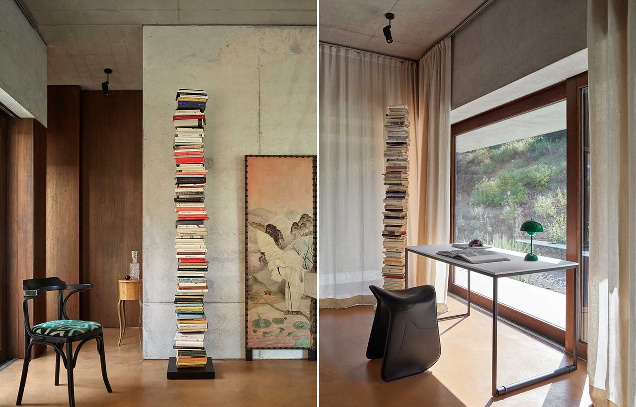 It illustrates an example of how we consciously experimented to investigate new techniques. The Hercle table features an imaginative use of material: a cork-based mortar, which we call Corkcrete. It is a sustainable and natural mortar that combines the lightness, flexibility, and thermal properties of cork with the binding properties of traditional mortar.