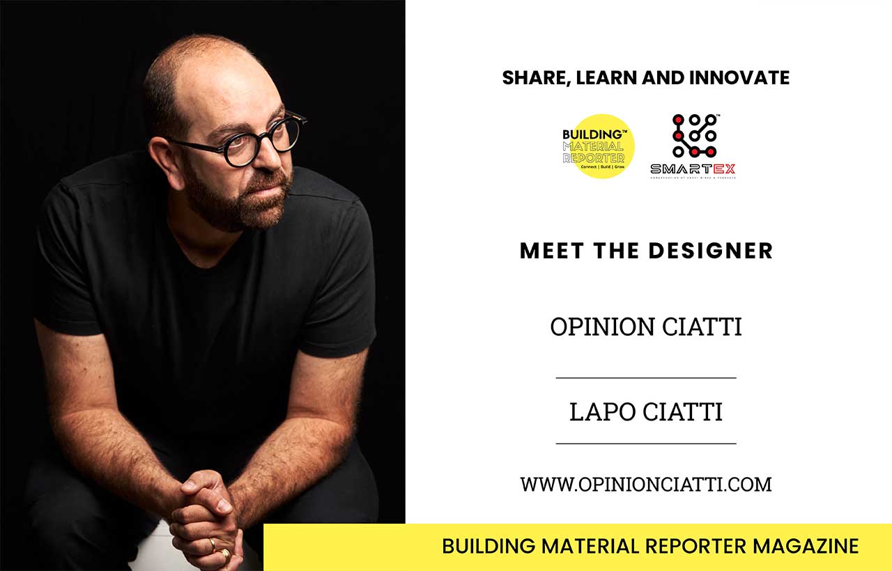 Building Material Reporter features the “4 M- Man, Material, Mother Nature, Market ” as an exclusive edition where Lapo Ciatti, CEO of Opinion Ciatti, with Ar. Priyanshi Shah shares his experience of curiosity, thoughtfulness, and awareness in design.