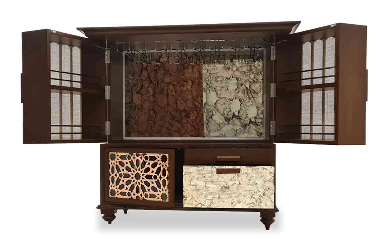 We always have an innovative approach to age-old ideas. We ensure to experiment with styles and mediums. For example, the brief for a functional bar cabinet was an eclectic design that brings together cane, copper, wood, and mirror into a functional cabinet.